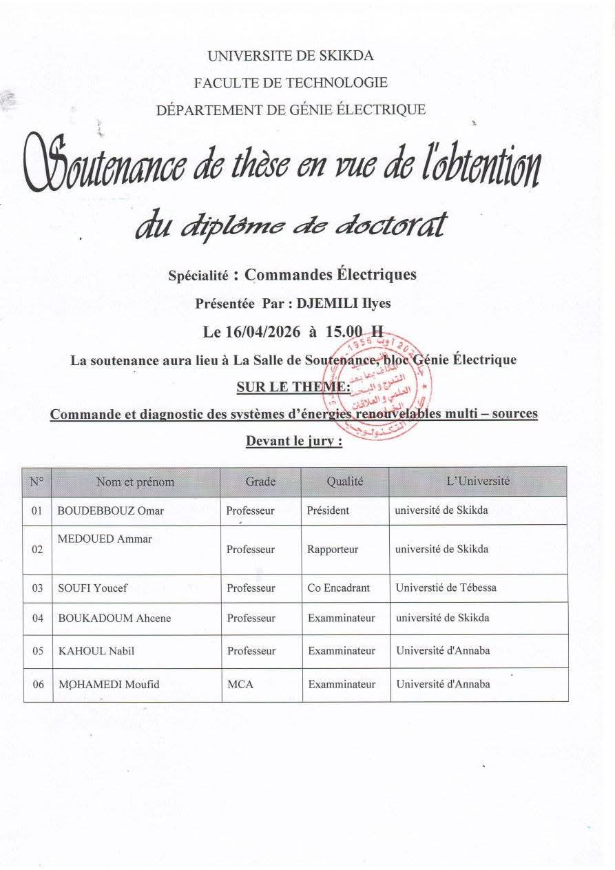 Soutenance de doctorat LMD (Mois de Mai 2026)