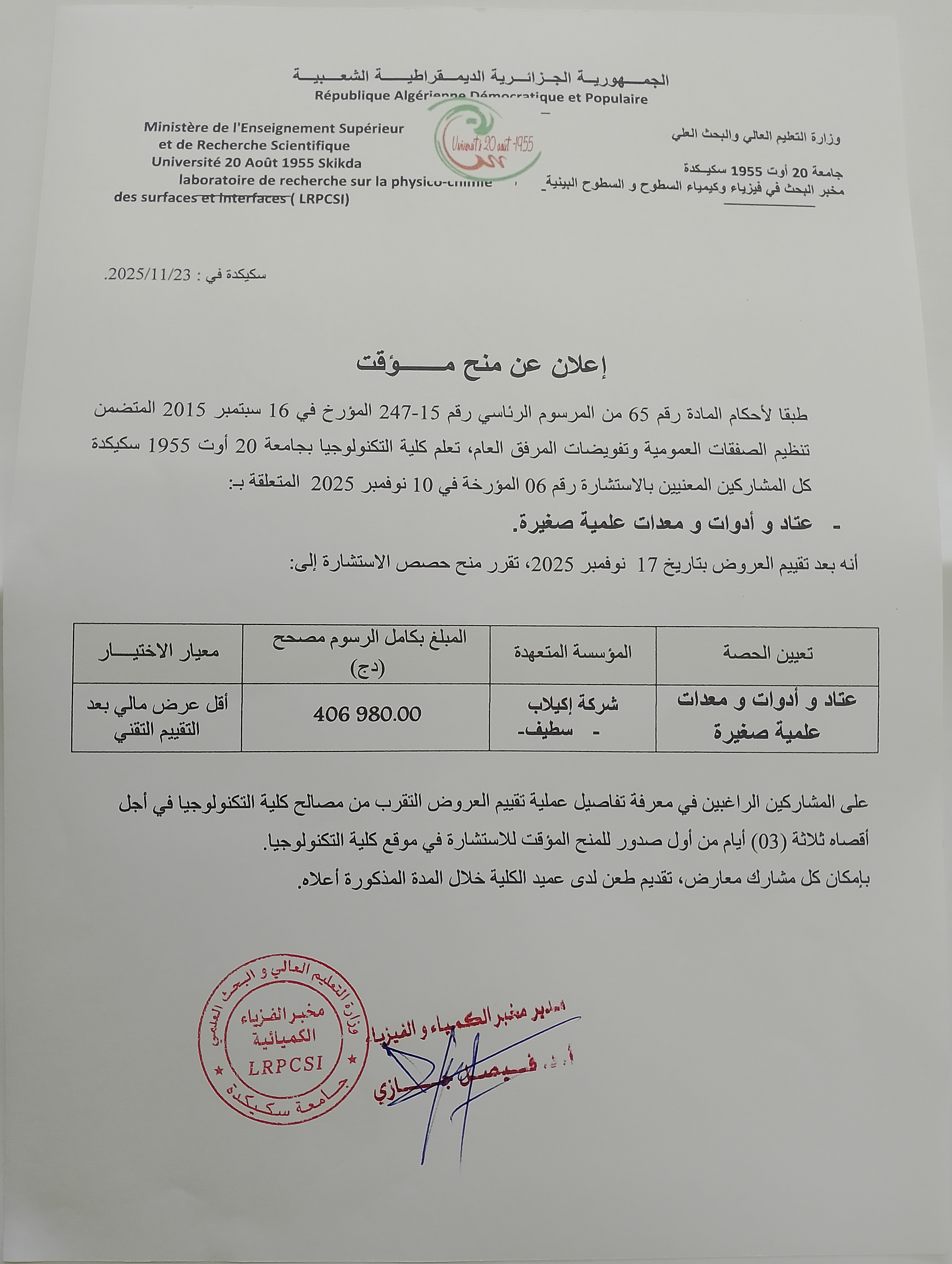 Soutenance de doctorat LMD (Mois de Novembre 2025)